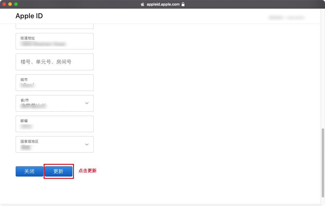 ,找出对应的省/市,填写完成后点击更新,更新地区信息。
